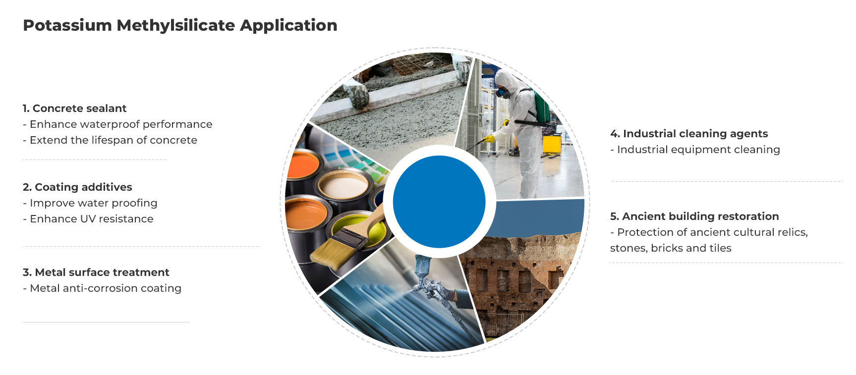 How does Potassium Methyl Silicate achieve wide application in the field of building material waterproofing with its unique properties?