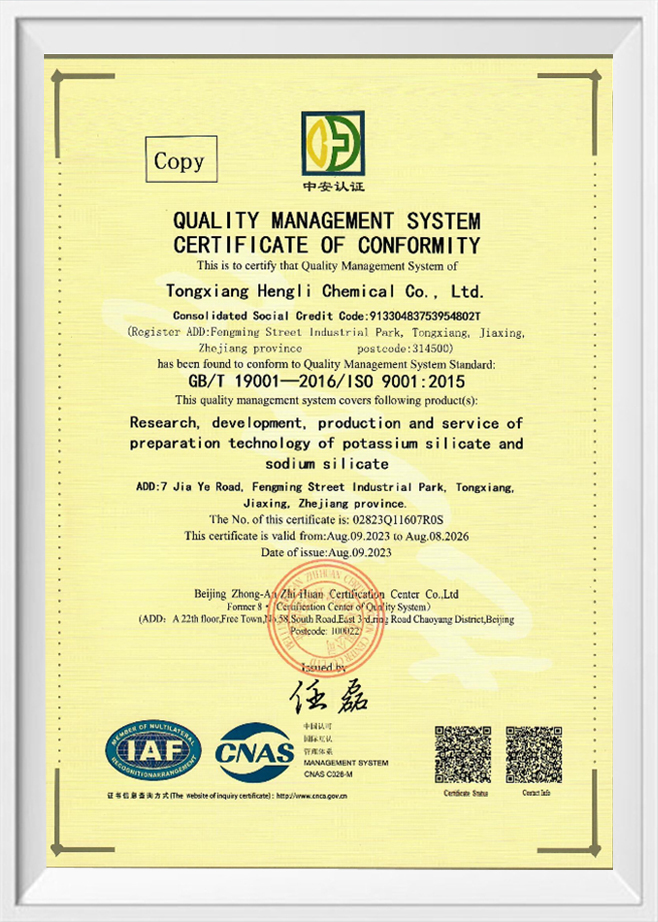 นอกจากนี้ ยังมีการใช้กันอย่างแพร่หลายในสารเติมแต่งของเหลวในการขุดเจาะบ่อน้ำมันและสาขาอื่นๆ ที่มีข้อกำหนดเฉพาะ เช่น ตัวรองรับตัวเร่งปฏิกิริยาและสารเติมแต่งในการเคลือบ การบรรจุและการเก็บรักษาโพแทสเซียมซิลิเกตแบบผงก็สะดวกมากเช่นกัน โดยปกติจะบรรจุในถุงกระดาษคราฟท์คอมโพสิตที่มีซับ PE โดยแต่ละถุงจะมีน้ำหนักสุทธิตามที่ระบุ เพื่ออำนวยความสะดวกในการขนส่งและการใช้งาน